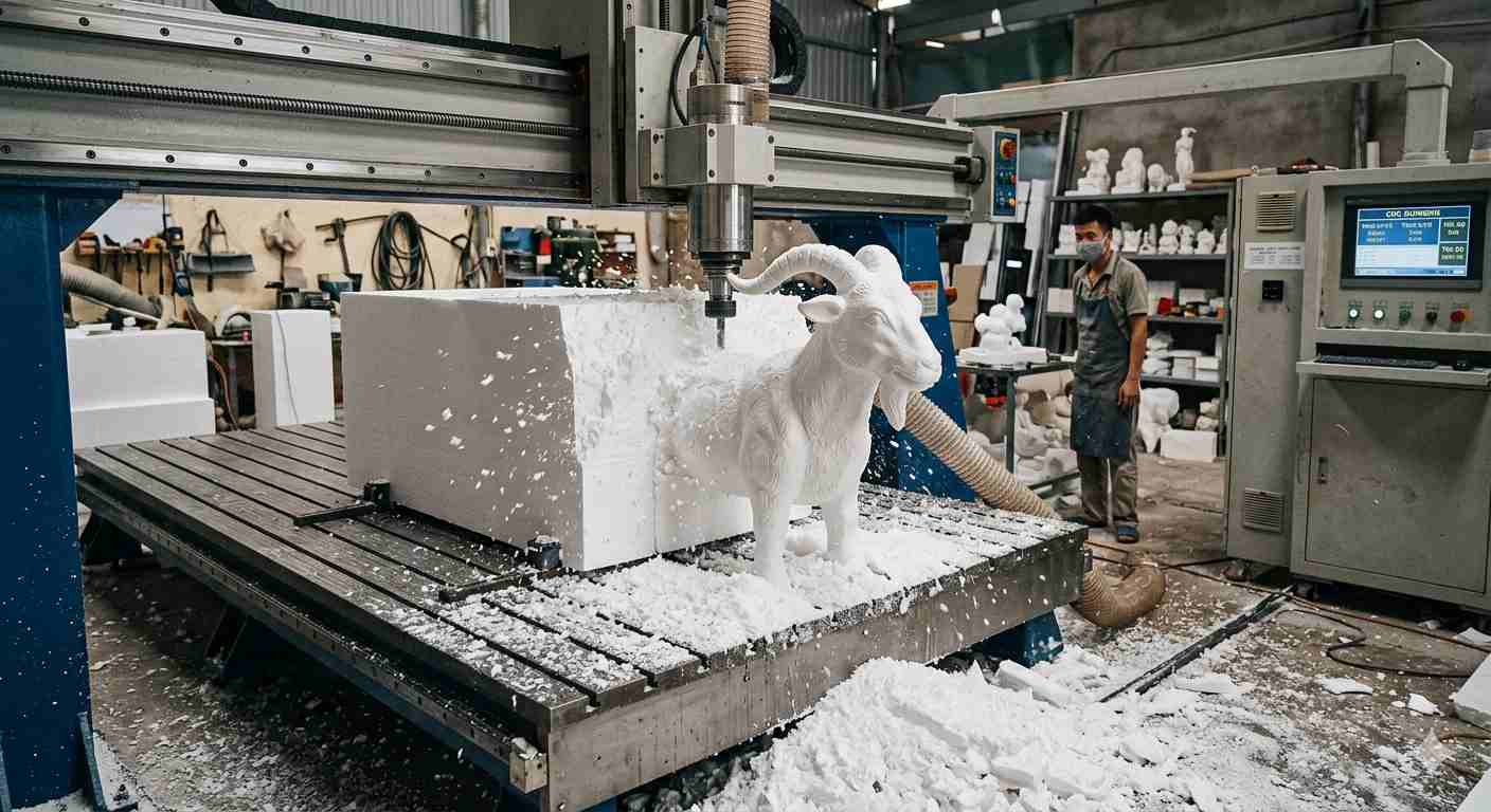 Loại xốp: Sử dụng xốp EPS tỷ trọng cao (xốp cứng) từ 10kg/m³ đến 20kg/m³. Loại này giúp nhát cắt mịn, không bị bể vụn khi gọt chi tiết gương mặt.